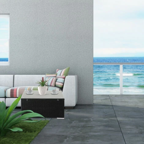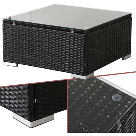 Esta moderna mesa auxiliar de poliratán es perfecta como mesa de salón o mesa de centro. Disfrute con estilo, ya que el bonito tejido de ratán tiene un aspecto muy noble en combinación con el brillante tablero de cristal.