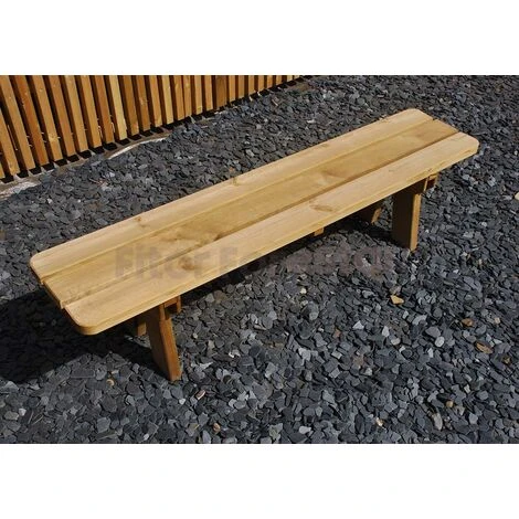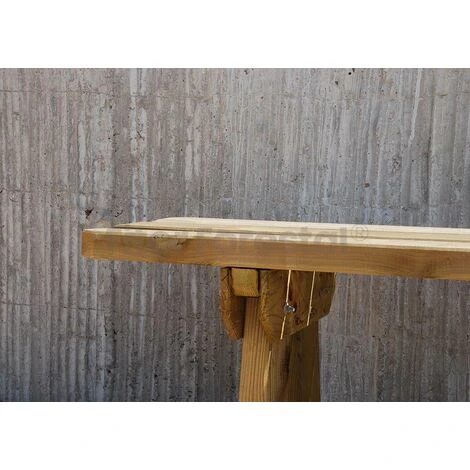Banco de jardín madera tratada para exterior. Ideal para jardines privados, terrazas o restaurantes. El banco de madera rústico está hecho con madera de pino tratada en autoclave clase 3, que le da resistencia y durabilidad al exterior. Mueble robusto de madera de calidad, fabricado mediante tablones de 4cm de grosor.
