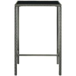 Hommoo Mesa Alta De Jardin Ratan Sintetico Y Vidrio Gris 70x70x110 Cm