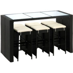 Hommoo Mesa Alta De Jardin Ratan Sintetico Y Vidrio Negro 70x70x110 Cm