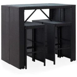 Mesa Y Sillas De Bar Jardín 5 Pzas Ratán Sintético Vidrio Negro VidaXL