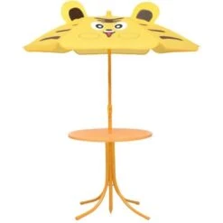 Mesa Y Sillas De Jardín Infantil 3 Pzas Con Sombrilla Amarillo VidaXL
