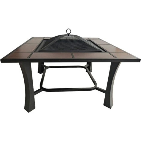 Apto para usar en exteriores, su práctico diseño en forma de tablero fabricado en acero y losetas de cerámica, dispone de un brasero central para la leña y una tapa protectora contra las chispas.