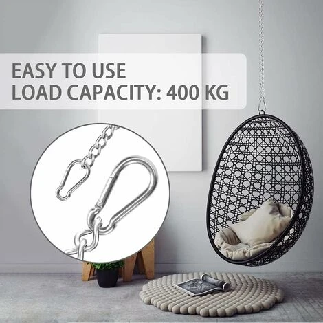 Fácil de instalar: la cadena de la silla colgante es fácil de instalar. Simplemente conecta los mosquetones a la cadena y luego cuélgalo en tu silla colgante favorita para relajarte y disfrutar.