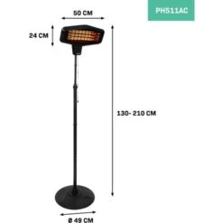 VONROC Calefactor Amiata 2200W – Elemento De Cuarzo – 3 Niveles De Calor – De Pie – Altura Ajustable