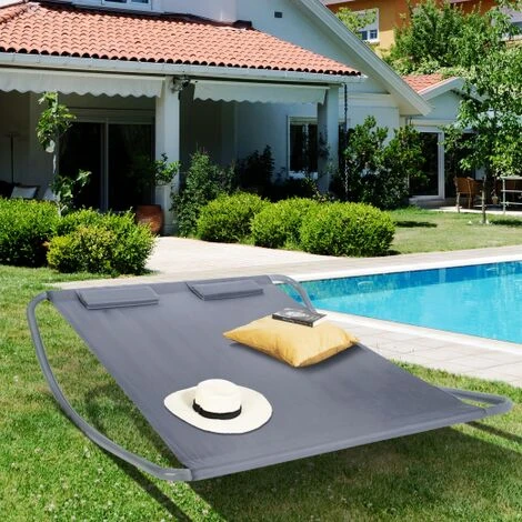 Esta cama de jardín es perfecta para dos personas o una sola. Quedará perfecto en su terraza o jardín.Esta hamaca con patas es perfecta para los amantes de la siesta o simplemente para disfrutar de un momento de relax al sol. Gracias a sus dos asientos y dos almohadas, podrá compartir un momento de convivencia en su jardín.Diseñada con materiales de calidad, la tumbona es robusta (hasta 200 kg de carga) y resistente, pero también ligera, lo que facilita su transporte.La estructura de acero de la cama y el tejido gris confirman su robustez y le permiten perdurar en el tiempo.Perfecta para un momento de relax a solas o en pareja, disfrute de la comodidad de esta tumbona contemporánea en su jardín o terraza.Dimensiones de la tumbona de tela gris- Dimensiones totales : Largo 200 CM x ancho 180 CM x alto 52 CM- Número de plazas : 2- Número de almohadas: 2- Diámetro de los tubos de acero: 48 x 1,1 MM- Dimensiones de la tela gris : L. 200 x A. 148 CM- Composición del tejido gris : 30% poliéster, 70% polietileno propileno- Capacidad de carga: 200 kg como máximoEste modelo de solarium está disponible en diferentes colores:- Tumbona 180 CM con tejido topo – Tumbona 180 CM con tejido negroTambién puede encontrar todas nuestras tumbonas en nuestra tienda en línea.
