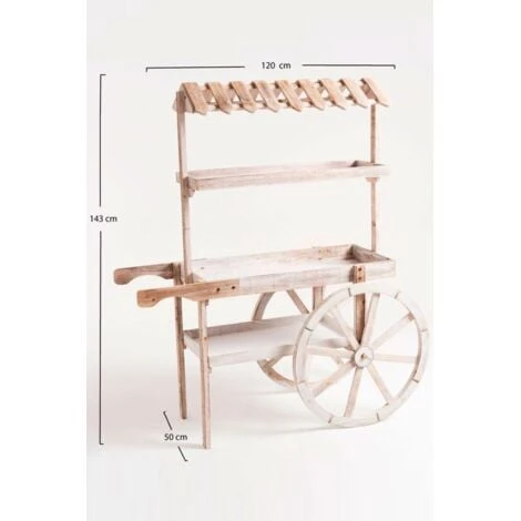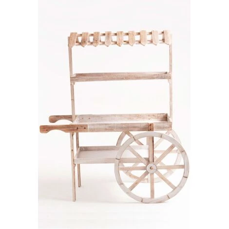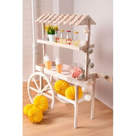 El carrito consigue crear un rincón de autoservicio muy atractivo. Está hecho en madera. Su color y forma posibilitan variados estilos de decoración. Todo depende del evento que celebres y el tono que quieras darle.