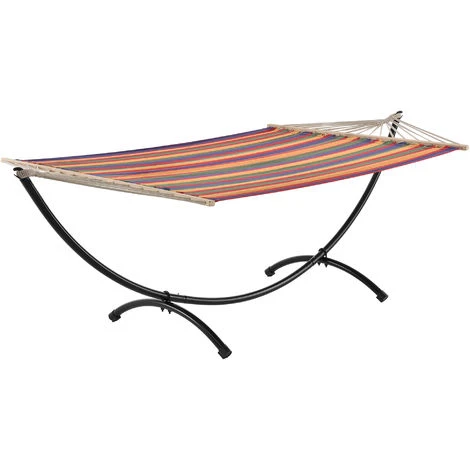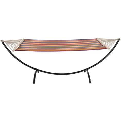 Hamaca para relajarse en el jardín, terraza o balcón. Incluye soporte, por lo que no tendrá que buscar árboles o paredes para colgarla.