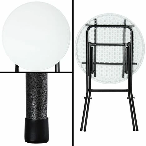 La mesa redonda de 110 cm de altura, con tablero de plástico de fácil cuidado y robusta estructura de metal con recubrimiento de polvo, es ideal para fiestas en el jardín, fiestas de cumpleaños, bodas u otros eventos. El tablero extragrueso de la mesa invita a reunirse y sirve como práctica superficie de almacenamiento.