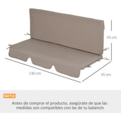 OUTSUNNY Cojín Para Palé Con Respaldo 120x80x12 Cm Para Banco Columpio Hamaca Crema