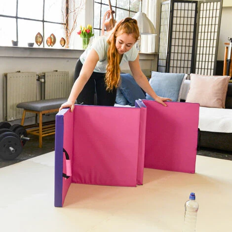 Se puede plegar en forma de maleta. El asa está equipada con un cierre de gancho y bucle que mantiene la estera doblada.