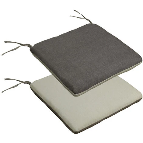 Pack de 6 cojines de asiento reversibles color taupe y beige. Desenfundables con cremallera. Tejido loneta de 130 gramos, compuesto por 75% poliester y 25% algodón.