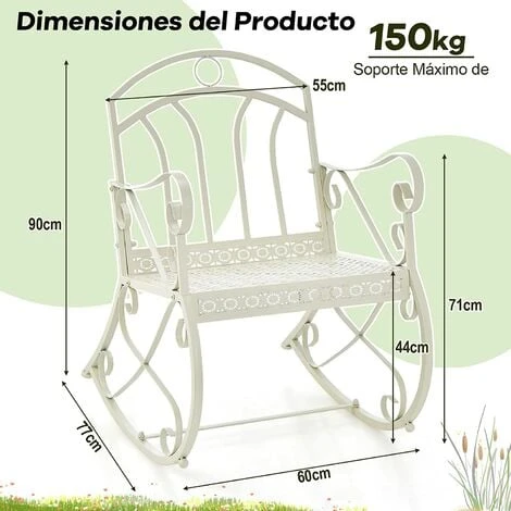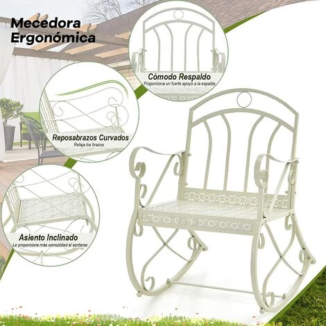 Además, la mecedora de exterior tiene un diseño ergonómico con el asiento inclinado y los reposabrazos curvados.