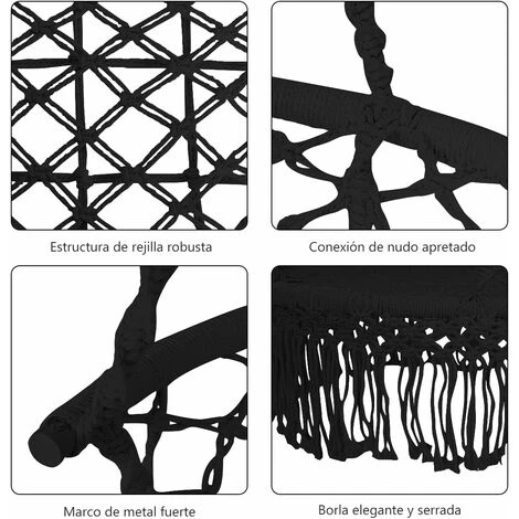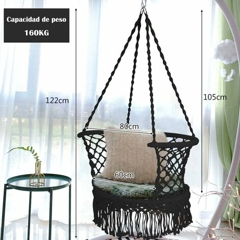 - Material resistente y duradero- Las cuerdas de esta mecedora están hechas de fibra de poliéster duradera y algodón suave, lo que garantiza un largo tiempo de funcionamiento sin romperse fácilmente. Esta mecedora, que consta de un marco de hierro de alta calidad y está diseñada en una red ajustada, ofrece un gran peso de 160 kg para una estabilidad adicional.