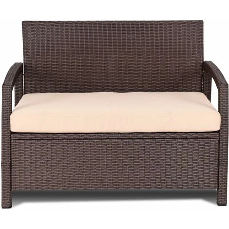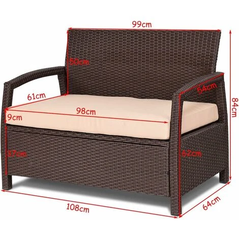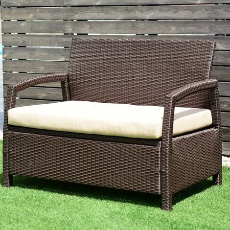 - Para 2 personas-El banco largo de ratán sintéticodiseña para dos personas. El respaldo y pasamanos ergonómico ofrece un sitiocómodo para descansar.