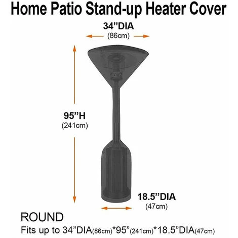 Cubierta exterior de alta calidad: tamaño de la cubierta del calentador de patio: altura 241 cm x diámetro 86 cm x diámetro 48 cm, se adapta a la mayoría de los calentadores de patio estándar. Mida su calentador de patio antes de comprarlo.