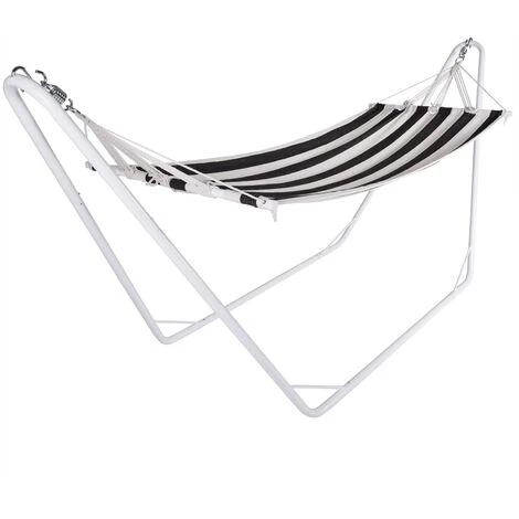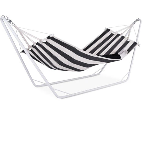 Como no se necesita árboles para colgar la hamaca, usted la podrá colocar donde desee. Esta hamaca es muy sólida y puede soportar hasta 150 kg. La robusta construcción metálica garantiza un sólido soporte y una buena estabilidad.
