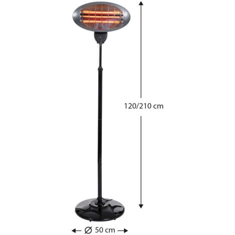 Estufa eléctrica de cuarzo para exteriores de pie telescópico. Podrás disfrutar en la terraza o jardín en cualquier época del año, solo tendrás que enchufarla y sus tres tubos radiantes de cuarzo comenzaran a emitir calor al instante. Esta estufa de terrazas te ofrece la posibilidad de ajustar la altura de forma sencilla, con su varilla telescópica, además del ángulo para orientar el calor donde desees hasta 45º.