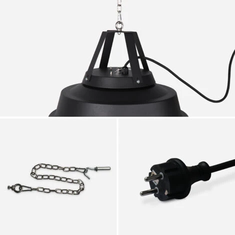 Estufa eléctrico de techo 1500W – Estufa tipo halógeno, kit de montaje incluido (cadena y gancho)
