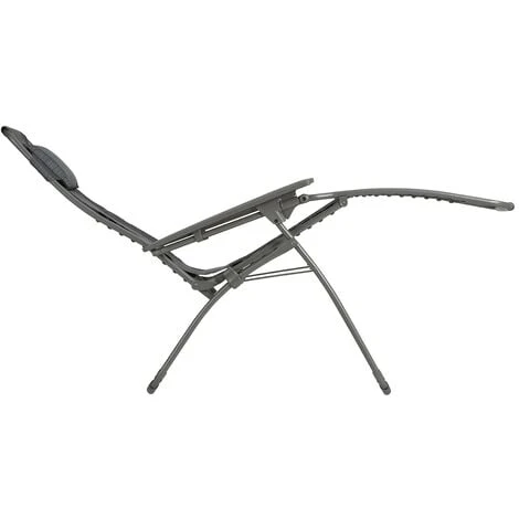 – Suspensión revolucionaria: clips de elastómero que aseguran la unión entre los tubos y la lona, garantía de una ergonomía perfecta, un confort más firme y una excelente sujeción de la espalda. Este sistema patentado por Lafuma facilita el montaje/desmontaje de la lona y por tanto la limpieza del producto.