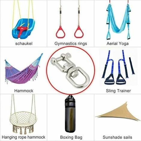 Rotación de 360°: Columpio de gancho sólido formado por dos anillos metálicos que giran libremente alrededor de un eje. Los ganchos colgantes de la hamaca se pueden girar 360 grados para evitar que se anuden después de la rotación Versatilidad y seguridad: Gancho de montaje en techo diseñado para aplicaciones donde se espera un montaje giratorio rápido con gancho o amarre rápido. El acero inoxidable de alta resistencia y los hilos de doble cara permiten que la cuerda se utilice en muchos lugares, ya sea en casa, en el jardín, a bordo o en el camping, mientras viaja, pesca, senderismo, deportes y navegación. Adecuado para colgar resortes, soportes de pared, soportes de techo, soportes de árbol, mosquetones, etc. Adecuado para colgar sillas, hamacas, columpios, hamacas, columpios, sacos de arena, marquesinas, banderas, pancartas, platos giratorios. Adecuado para uso en interiores y exteriores.Debido a la medición manual, habrá algunos errores.