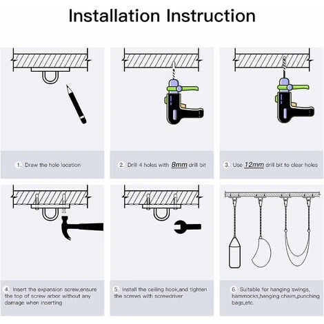 Amplias áreas de aplicación: nuestros ganchos de techo son aplicables para colgar sillas, hamacas, soportes para sacos de boxeo, columpios, toallas de yoga, sillas colgantes, velas solares, columpios para niños, sillas suecas, asientos colgantes, columpio de amor , entrenador de cabestrillo, etc.