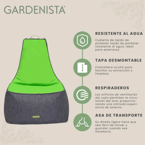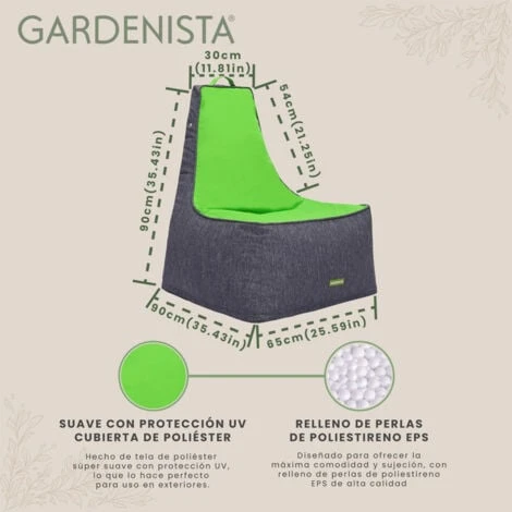 Nuestro sillón Gardenista es una gran inversión para su espacio al aire libre. La silla está hecha de tejido de poliéster duradero, que también es resistente a la intemperie y cuenta con protección UV para mantener los colores brillantes y vibrantes. Rellena de perlas de poliestireno EPS de primera calidad, la silla ofrece un excelente soporte lumbar y comodidad. La silla está diseñada con ventilación para garantizar una experiencia de asiento cómoda.
