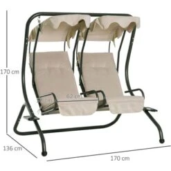 OUTSUNNY Columpio Balancín Jardín 2 Plazas Con Techo Bandeja De Bebida Acero