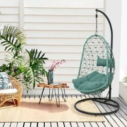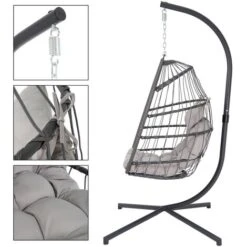 Columpio Silla Colgante Huevo Metal Acero Columpio Color Gris Exterior Jardín