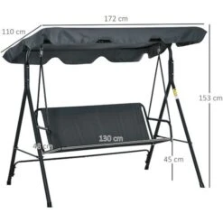 OUTSUNNY Columpio Balancín De Jardín Con Dosel Ajustable De 3 Plazas Con Cojines Gris