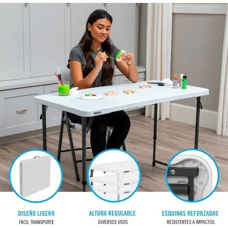 - Mesa plegable regulable en 4 alturas LIFETIME, diseño rectangular 122 x 61 x 56
