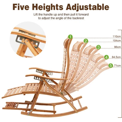 RELÁJATE CON MECEDORA CÓMODA: Esta mecedora plegable te permite sentarte en salón o recostarte perezosamente al sol para aliviar la fatiga física, leer un libro, ver una película, o hacer que su bebé se duerma rápidamente, etc. Los trabajadores de oficina pueden acostarse en esta silla para tomar una siesta.