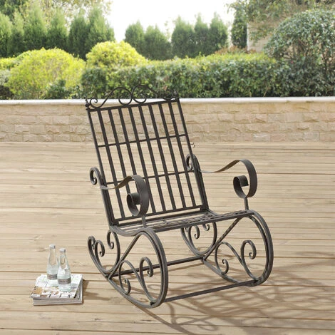 Esta hermosa mecedora de jardín o terraza de metal de estilo vintage convierte su jardín en un cuento de hadas.