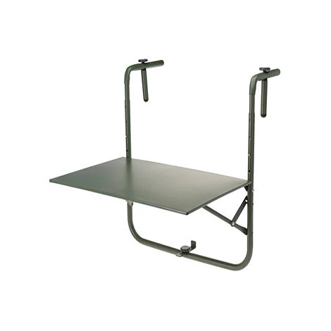 Mesa balconera 60×43 cm verde.-Fabricada en acero de alta calidad.-Apta para balcón o patio.-Resistente a rayos UVA.-Tubo de 22 mm.-Peso máximo de carga: 50 kg.-Altura en 4 posiciones (desde 55 a 70 cm.-Para barandillas de hasta 16 cm de grosor.-Medidas: 60 x 43 cm.-