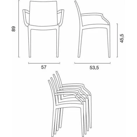Las sillas son Made in Italy, tienen certificación Contract (para uso profesional) y, por lo tanto, son extremadamente resistentes e ideales para cualquier tipo de establecimiento público. Además, las sillas pueden usarse tanto en espacios exteriores como interiores como cocinas, comedores, salones, jardines y porches. El precio incluye 1 mesa y 4 sillas Bistrot Arm a elegir entre los colores disponibles.