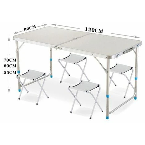Set de Taburetes Multiusos Incluye una mesa de picnic plegable de 1,2 m y 4 taburetes para 4 personas, cómodos de transportar, perfectamente utilizados como mesa de picnic, mesa de juego, mesa de comedor exterior y mesa de servicio.