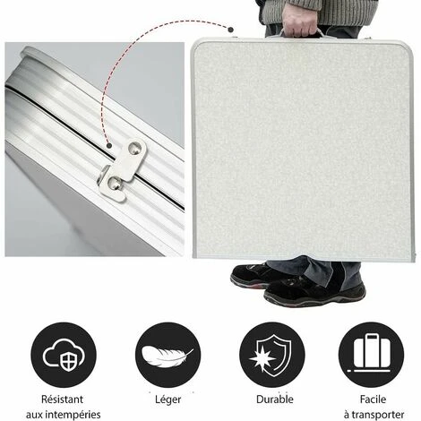 Premium Material La mesa de picnic está hecha de aleación de aluminio y fibra de alta densidad, es resistente, duradera y liviana. La construcción de pies cuadrados hace que se mantenga más estable que las ordinarias.