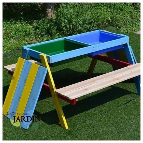 - La mesa picnic infantil dispone de dos bandejas con arenero conviertiendola en un producto versátil para los más pequeños de la casa.