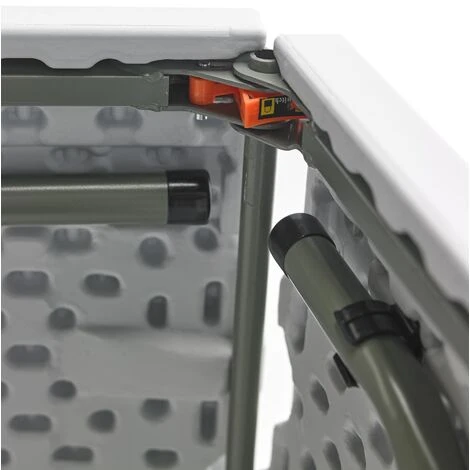 Mesa auxiliar plegable con patas abatibles con tablero de HDPE reciclado de alta densidad con protección UV y estructura robusta de acero.
