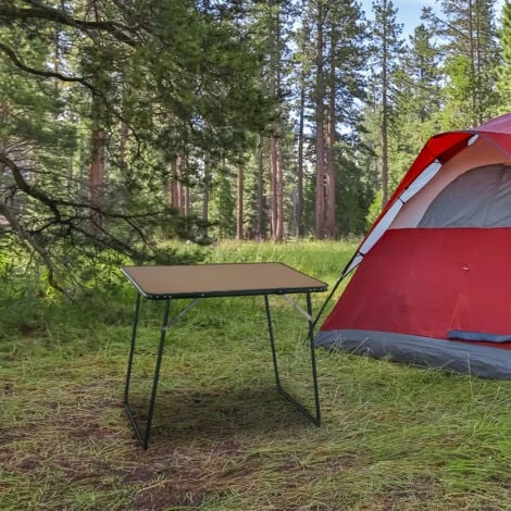 Mesa plegable para excursiones, jardín o camping para 2-4 personas. Esta mesa multiusos se fabrica con un tablero durolac (madera de alta densidad y gran dureza) de 78 x 58 cm con un refuerzo metálico alrededor y con tubo redondo en acero pintado en epoxy que evita la corrosión. Es plegable y ligera para que puedas llevarla a tus excursiones con facilidad. Dispone de pies estabilizadores para una mayor estabilidad. Características: – Para 2-4 personas. – Uso exterior. – Tubo de acero. – Medidas: 82x58x66 cm. – Material: Tablero de madera de pino y eucalipto desfibrado, prensado y lacado. – Color: Pino Y verde. – Peso: 3,4 kg.