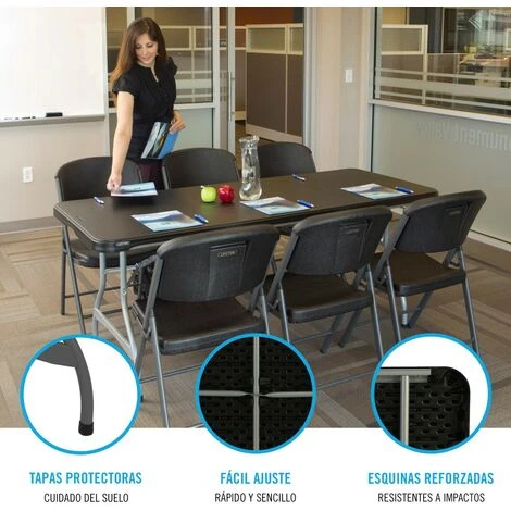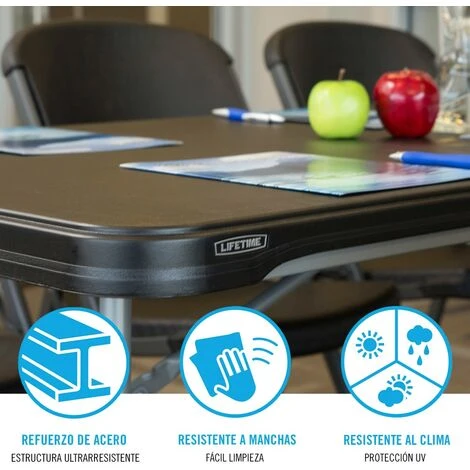 - Mesa rectangular negra con patas plegables, tamaño ideal para 6 personas Lifetime