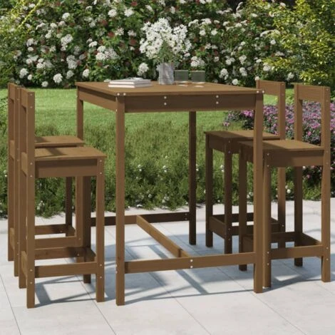 ¡Toma un sorbo de tu bebida favorita o disfruta de una buena comida con la familia y los amigos alrededor de este juego de mesa y taburetes altos de madera!