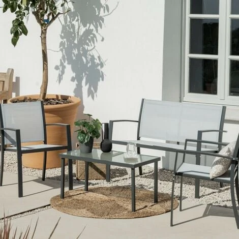 El modelo Cancún set exterior es un cómodo conjunto de muebles de exterior ideal para disfrutar del buen tiempo. Se trata de un conjunto de muebles de exterior perfecto para tu balcón, jardín o terraza, compuesto por 2 sillones individuales, 1 sofá doble y 1 mesa, por lo que está diseñado para alojar a 4 personas.