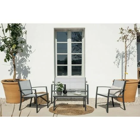 La estructura del set de exterior Cancún es de acero galvanizado y textileno, materiales nobles y resistentes a la intemperie y a los rayos UV, que le aportan un estilo modelo a la vez que confortable e ideal para decorar tu jardín, terraza o balcón.