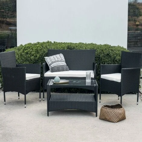 El modelo Washington es un precioso set de muebles de exterior ideal para pasar momentos al aire libre en buena compañía. Se trata de un moderno conjunto de muebles de exterior perfecto para tu balcón, jardín o terraza, compuesto por 1 sofá doble, 2 sillones individuales y 1 mesa de centro, por lo que está diseñado para alojar a 4 personas.