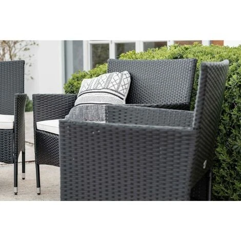 La estructura del mueble de exterior Washington es de acero inoxidable reforzado recubierto con polietileno de alta densidad trenzado a mano, también conocido como ratán sintético o poliratán, de alta calidad resistente a la intemperie y a los rayos UV.