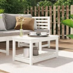 Mesa De Jardín Madera Maciza De Pino Blanco 82,5×50,5×45 Cm VidaXL