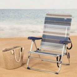 Silla De Playa Plegable Solenny Reclinable 5 Posiciones Con Respaldo Anatómico 67x63x114 Cm