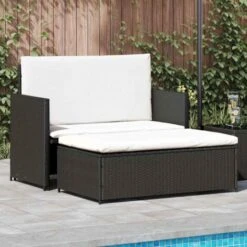Set Muebles De Jardín 2 Piezas Y Cojines Ratán Sintético Negro VidaXL