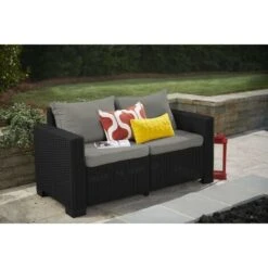 Sofá De Jardín Gris Oscuro De Aluminio 2 Plazas Con Cojines Salerno